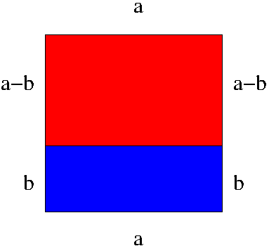 Diesmal unterteilen wir das Quadrat anders. Wir schneiden einen Streifen der Länge $b$ ab.