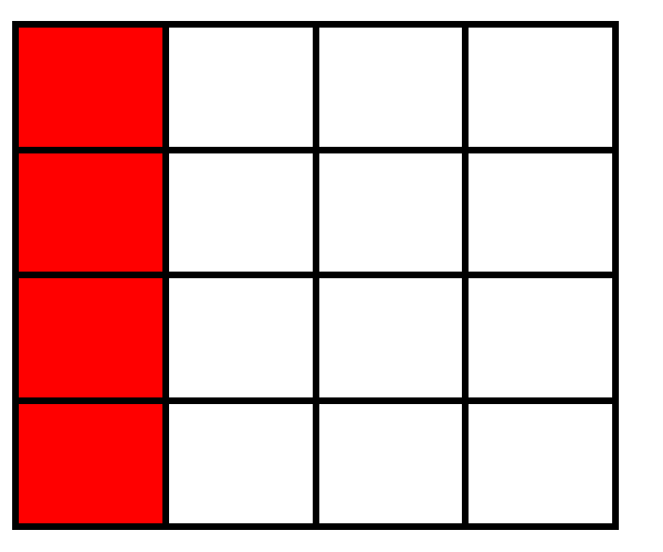 $\frac{4}{16} = \frac{1}{4}$ der Quadrate sind rot.